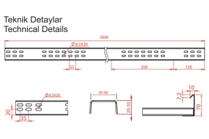 SİPARİŞ KODU W / mm. H / mm. L / mm. AGIRLIK kg/mt